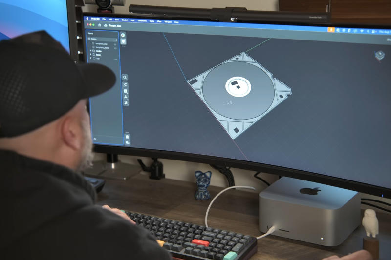 Чтобы воссоздать этот устаревший носитель, авторы Polymatt тщательно замерили его конструкцию и воссоздали корпус в системе трёхмерного моделирования, после чего изготовили его на станке Carvera Air с ЧПУ. Сам магнитный диск вырезали лазером из плёнки из полиэтилентерефталата (ПЭТ) и нанесли на него суспензию порошка оксида железа.