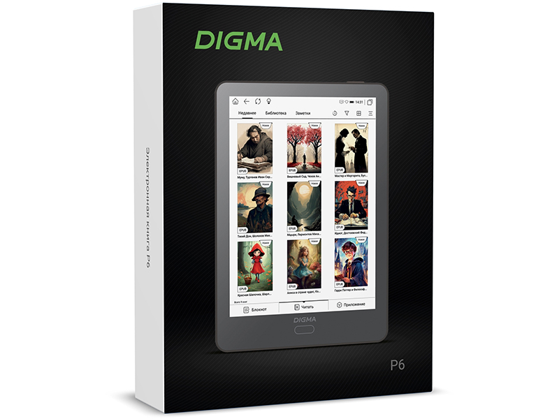 DIGMA P6 оснащена 6-дюймовым цветным сенсорным экраном E Ink Kaleido с разрешением 1448×1072 пикселей и поддержкой до 4096 цветов и оттенков, что удобно для чтения иллюстрированного или цветного контента: комиксов, детских книг, учебников, научных пособий, справочников и бизнес-литературы.