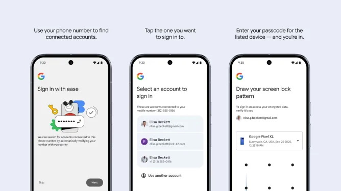Google также добавила новый метод восстановления доступа к учётной записи — вход по номеру мобильного телефона. Инструмент автоматически идентифицирует все учётные записи, привязанные к указанному номеру.