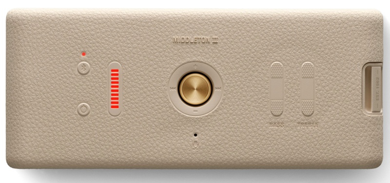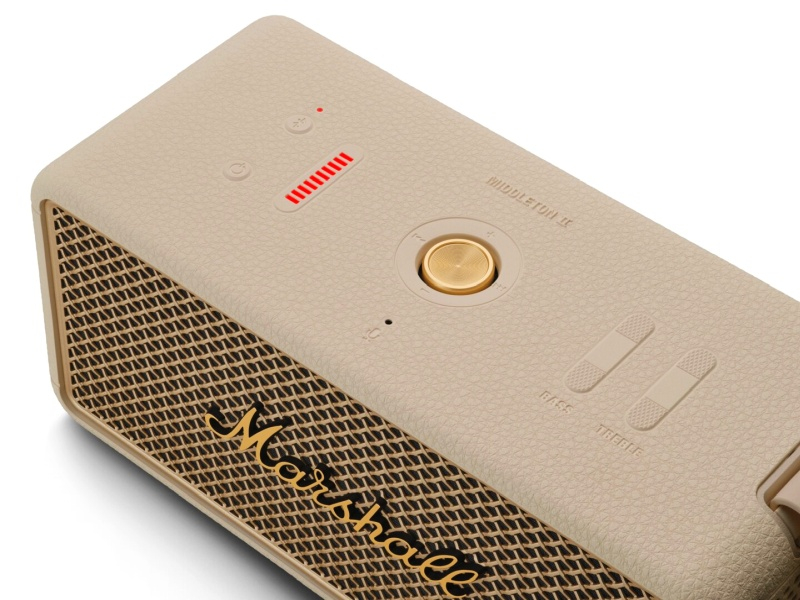 Портативная колонка Middleton II получила узнаваемый оригинальный дизайн динамиков Marshall, отсылающий к концертным акустическим системам и гитарным комбоусилителям компании. Кнопки и утопленный джойстик для управления воспроизведением расположены на верхней части устройства. Звук также можно настраивать с помощью фирменного приложения. Встроенный микрофон позволяет использовать колонку для звонков со смартфона в режиме громкой связи.
