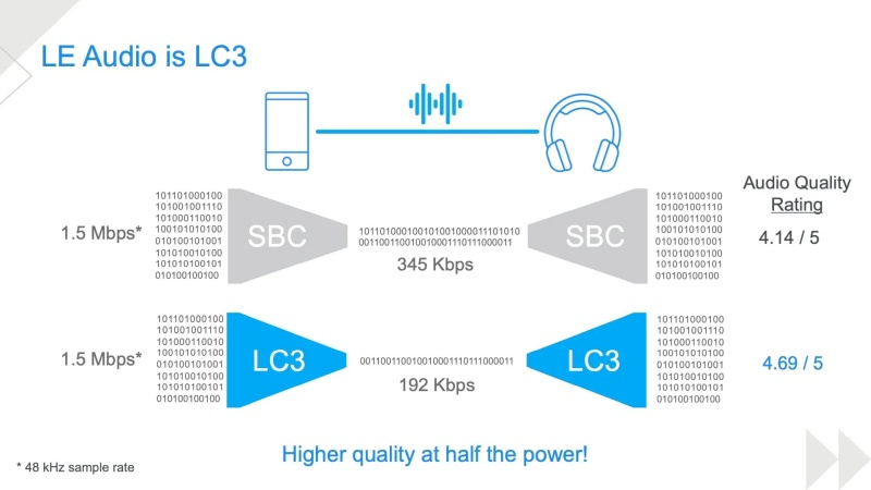 Используемый в колонке протокол LE Audio основан на Bluetooth LE (Low Energy — «низкое энергопотребление») и обеспечивает передачу аудиоданных с минимальными затратами энергии при сохранении приемлемого качества. Кодек LC3 (Low Complexity Communications Codec — «коммуникационный кодек низкой сложности») пришёл на смену стандартному SBC и, по мнению некоторых экспертов, не только экономит заряд батареи наушников и смартфона, но и обеспечивает лучшее качество звука.