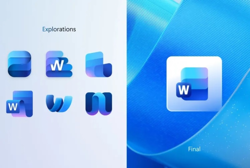 Некоторые концепты иконок для Word получились в ходе эксперимента, где дизайнеры изображали нечто похожее на блокнот и задействовали разные способы визуализации стопки бумаги или документов. Microsoft пробовала сделать буквенное обозначение Word ключевым элементом иконки, а также варианты, где буква гармонично вписывается в общую концепцию или же вовсе отсутствует. В итоге компания остановилась на дизайне с тремя вертикальными полосами вместо четырёх.