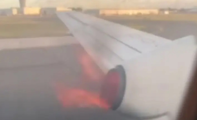 Пассажиры воздушного лайнера стали свидетелями возгорания двигателя