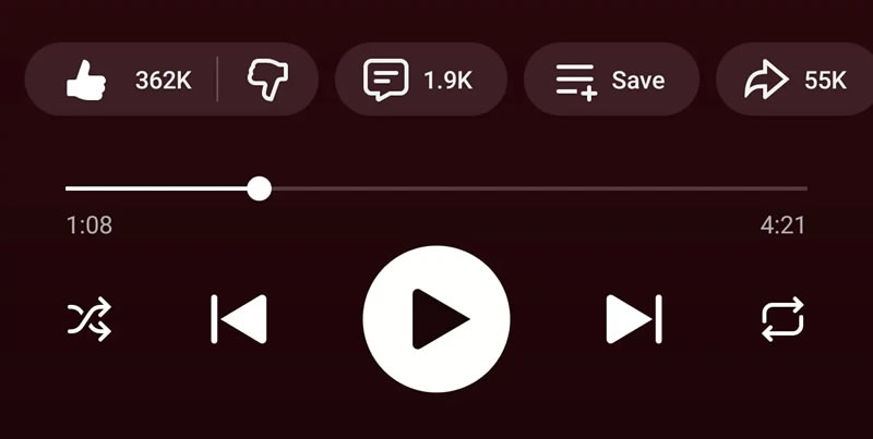 На мобильных устройствах в альбомной ориентации основные изменения коснулись размещения большинства элементов управления в левой части экрана в виде единого блока. Также YouTube внёс обновления в набор иконок для стандартных действий, которые уже используются в YouTube Music. При нажатии на «Нравится» в некоторых видео появляется пользовательская динамическая визуализация, например, для музыкальных клипов — анимированная нота, для спортивного контента — визуальный элемент из игры.